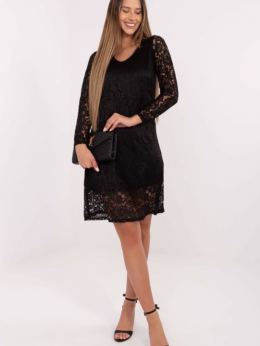 An elegant knee-length dress made of a dominant blend of polyester, viscose, and elastane, which ensures comfort, flexibility, and a beautiful fit to the silhouette. The model charms with an openwork pattern and subtle lace, creating an exceptionally feminine, elegant look. The dress has a lining, making it look elegant and ensuring full comfort when worn, even though the long sleeve remains unlined, retaining lightness and delicacy. The sweetheart neckline is located both at the front and back, adding a sensual yet still elegant character to the outfit. The model does not have a closure, making it easy to put on and perfectly fit the silhouette. This is an ideal proposition for formal occasions, but it will also work great for work if you want to look stylish, feminine, and professional at the same time.