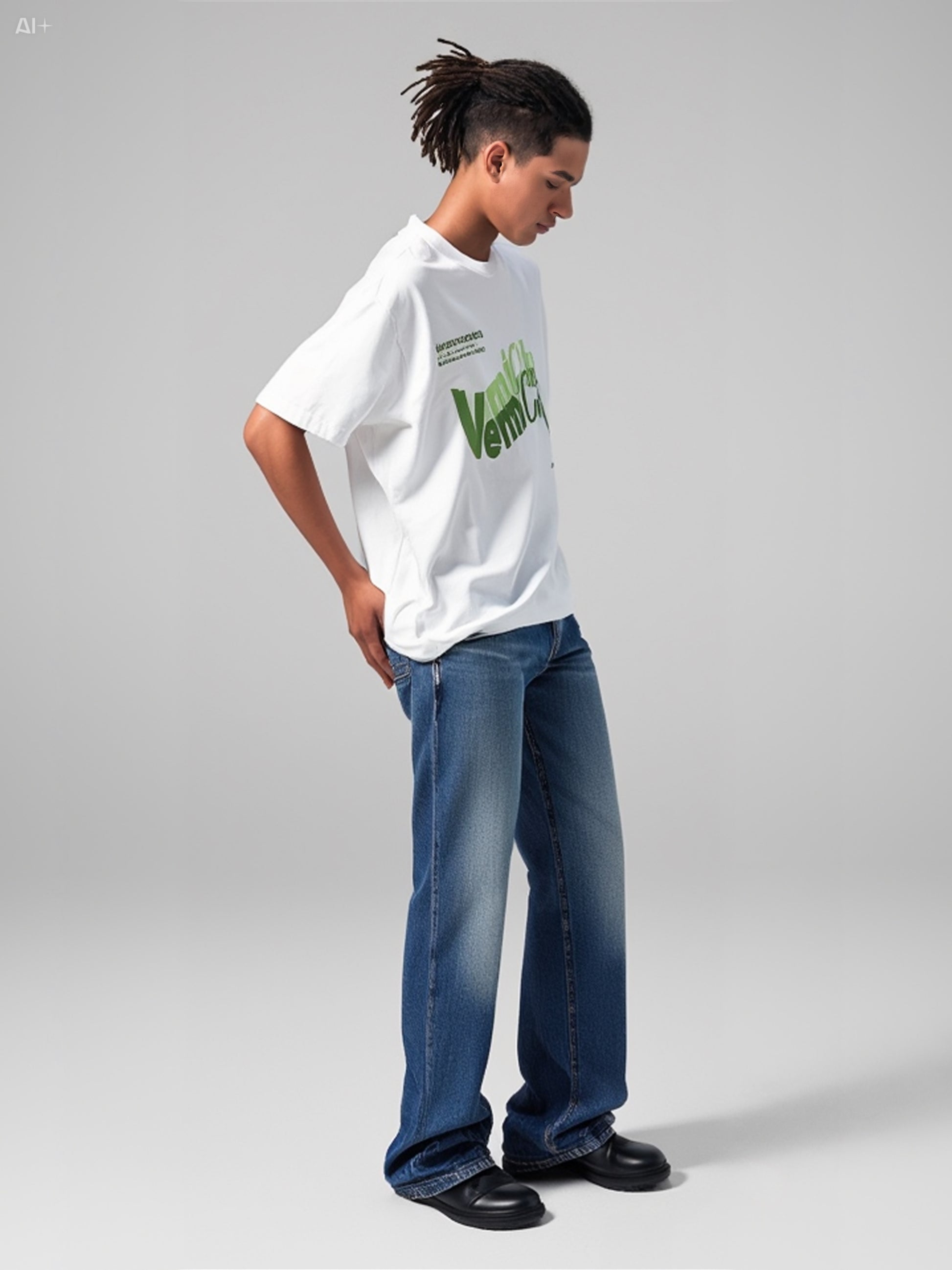 Make a statement with this contemporary graphic t-shirt featuring bold green typography. The oversized design and artistic lettering create a fresh, modern aesthetic perfect for casual streetwear enthusiasts.