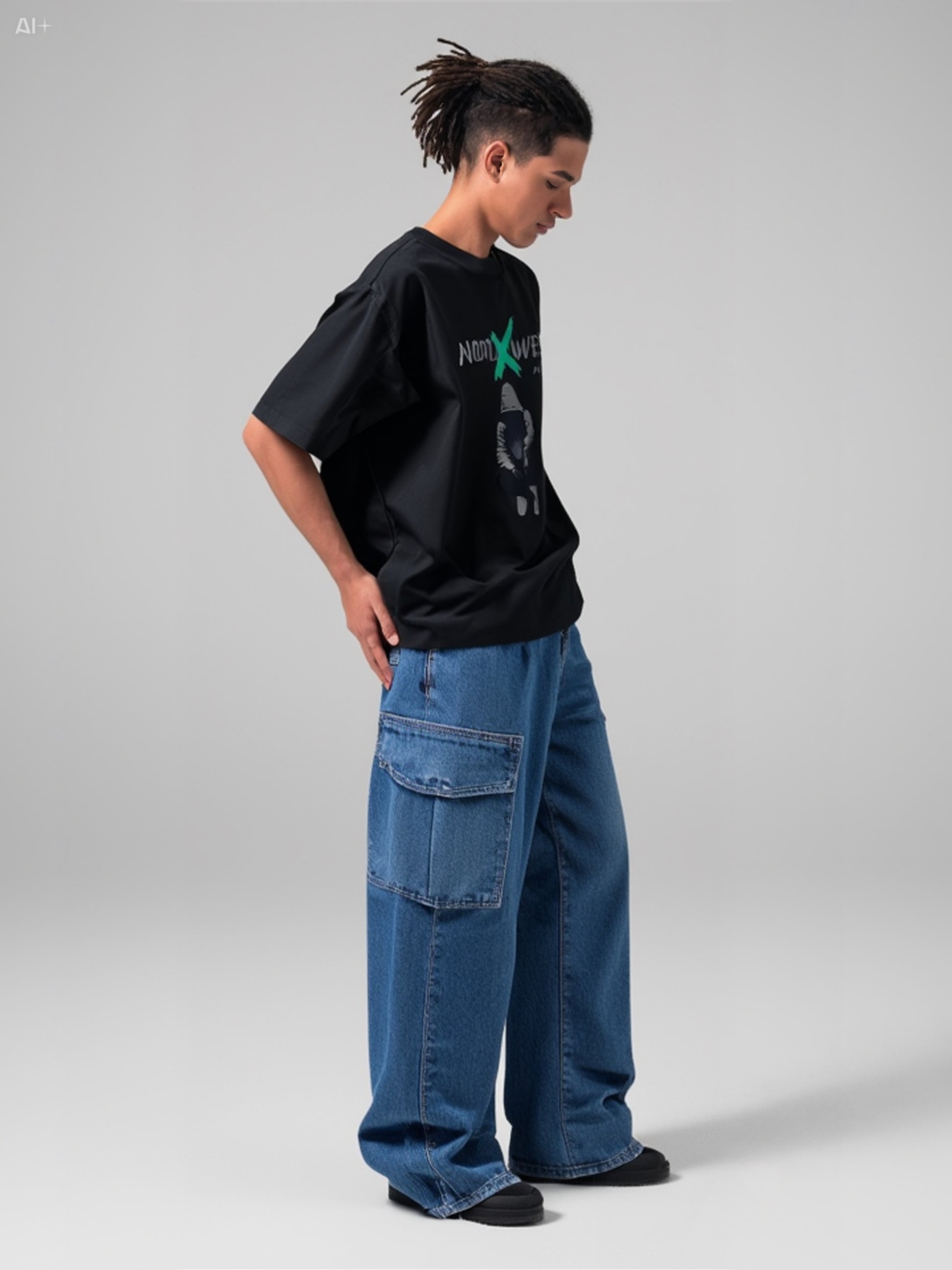 Express your urban edge with this bold graphic t-shirt featuring a striking artistic design. The oversized silhouette and eye-catching print make this a standout piece for contemporary streetwear enthusiasts.